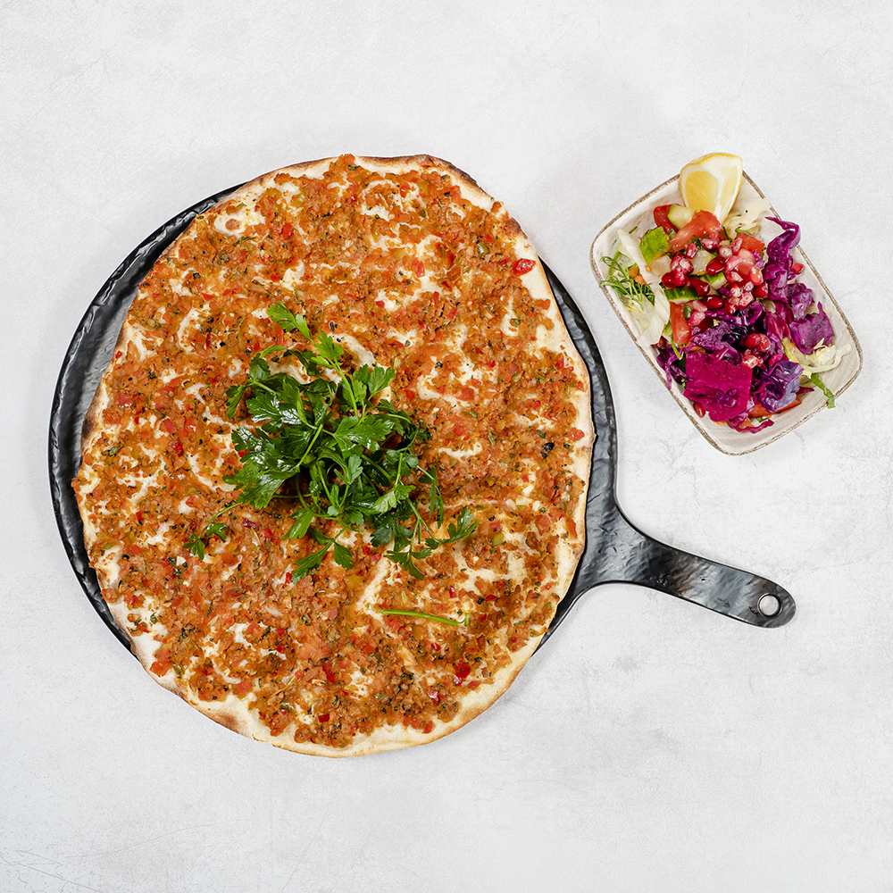 Turecka pizza z mielonym mięsem jagnięco-wołowym Turkish pizza with ground lamb - beef meat